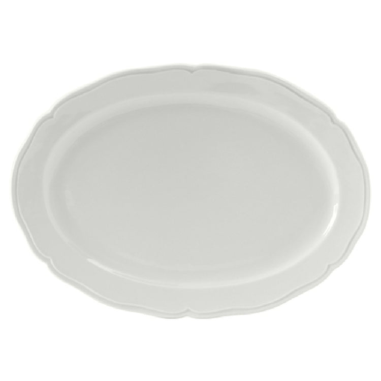 Tuxton SCH-090 9 Inch Oval Platter Scalloped Edge Dishwasher Safe Porcelain - 2 Dozen/Case