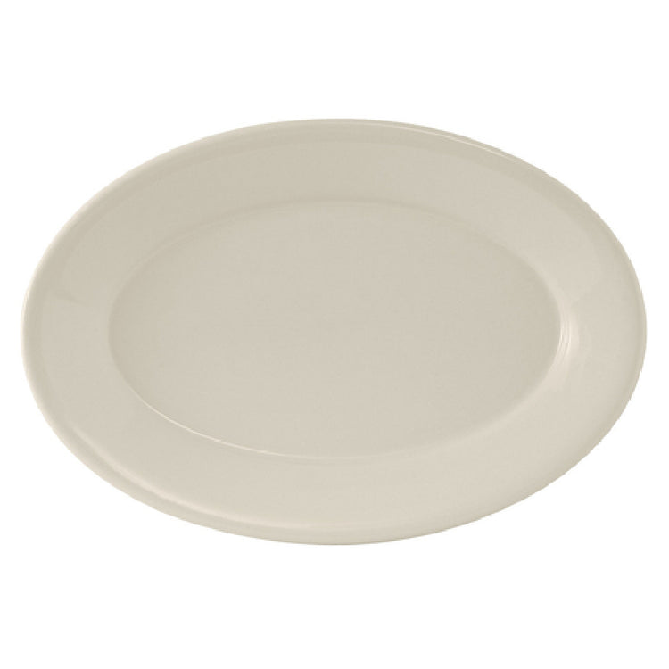 Tuxton TRE-034 9-3/8 Inch Oval Platter Ceramic Wide Rim Rolled Edge - 2 Dozen/Case