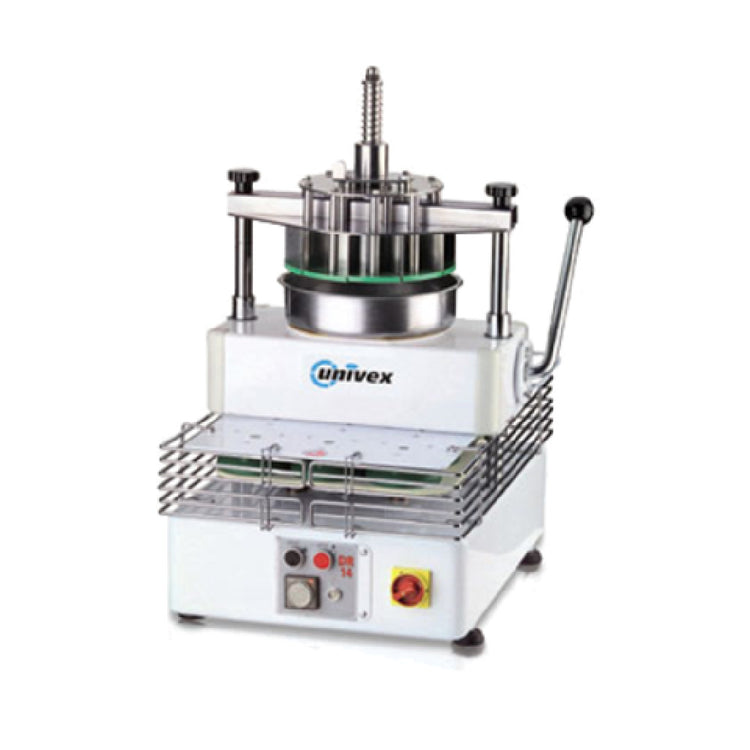 High-quality and durable with manual and automatic features, the Univex DR14 offers reliable dough portioning and rounding for bakery, pizza, and foodservice environments. Its robust stainless steel design, specialized for medium throughput, supports precise operation in professional kitchen workflows, ensuring consistent dough quality in commercial bakeries and pizzerias.