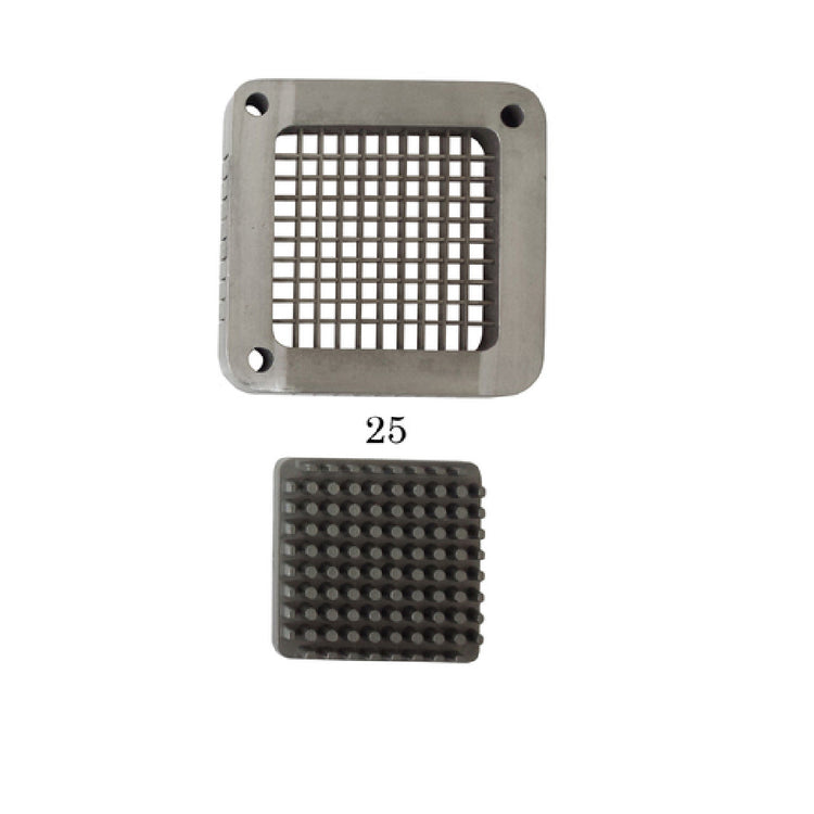 Designed with durable stainless steel, the DFC-FP25 cutting frame offers superior corrosion resistance and longevity compared to standard models. Its precise 1/4" square cutting profile ensures uniform slices for consistent product quality. The compatibility with DFC & SSD models simplifies replacement, and its ergonomic design reduces operator fatigue during repetitive tasks. The frame's easy disassembly supports efficient cleaning, while its robust build guarantees sustained performance in demanding commercial kitchens.