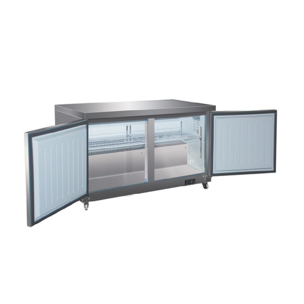 The Valpro VPUCF60 Undercounter Freezer Reach-in Two-Section is a commercial-grade refrigeration unit designed for precise temperature control and high durability in foodservice environments. Featuring self-contained, rear-mounted hydrocarbon refrigeration and a 1/2 HP compressor, this model provides reliable freezing capabilities within a compact footprint. Constructed with stainless steel front and sides, along with a food-safe white ABS interior, it is optimized for commercial kitchens, hospitals, and food prep stations, offering an efficient solution for quick access to frozen ingredients. The unit's 15.5 cubic feet capacity, with two hinged solid doors and adjustable epoxy-coated wire shelves, ensures organized and accessible storage in demanding settings.