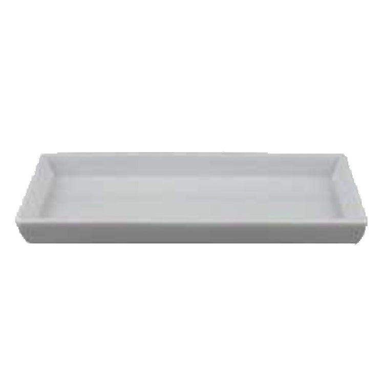 The Vertex China AV-Q22R serving tray features dimensions of 8.38 inches in width and 3.25 inches in depth with a weight of 23 lbs per case, suitable for demanding commercial use. Constructed from China (unspecified material), it boasts a bright white, glossy finish that promotes sanitation and ease of cleaning. The tray’s design includes a rolled edge to enhance strength and safety during handling. Although specific electrical requirements are not applicable, the tray’s durable fabrication provides resistance to everyday wear and thermal variations typical in foodservice environments. Its straightforward, rectangular shape makes it adaptable to various display or service needs, supporting high-volume operation in restaurant, catering, and hotel settings. The product is available for quick shipment generally within 1 to 2 days.
