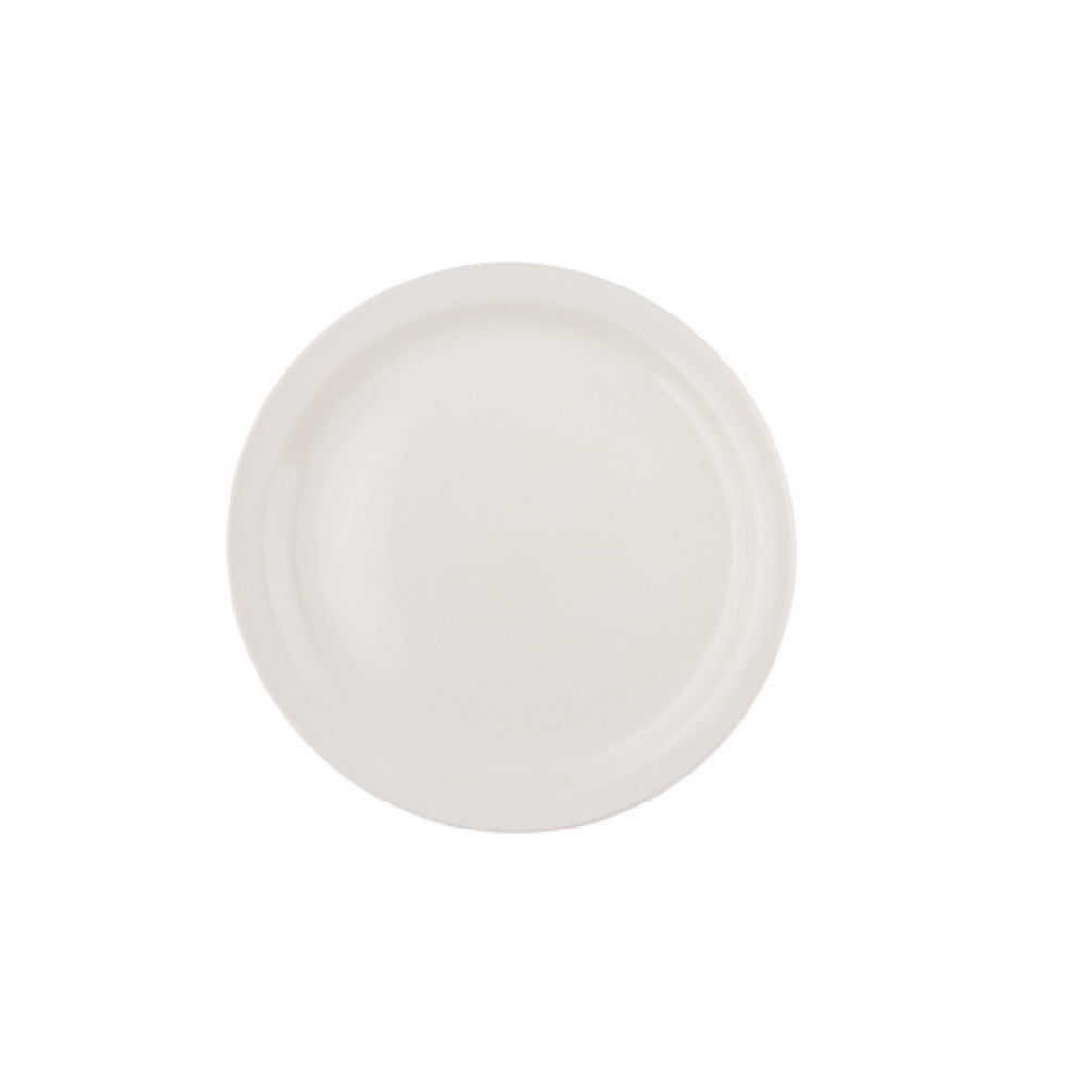 The Vertex China VNR-9 Plate features a robust china construction with dimensions of 9.5 inches in width and a weight of 46 lbs per case, providing a stable and impact-resistant profile for demanding commercial settings. Its material complies with standard food safety requirements and supports extensive dishwashing cycles. The plate is designed with a round shape, narrow rim style, and polished foot for enhanced stability and presentation. Operating conditions include standard commercial kitchen temperature ranges, with no specialized refrigeration or electrical requirements. Built for high-volume use, the VNR-9 supports consistent presentation and longevity for restaurants, hotel buffets, and catering services. It is available in a classic white finish, ensuring seamless integration into existing serveware collections. Maintenance involves dishwasher cleaning, with no disassembly needed for routine care.
