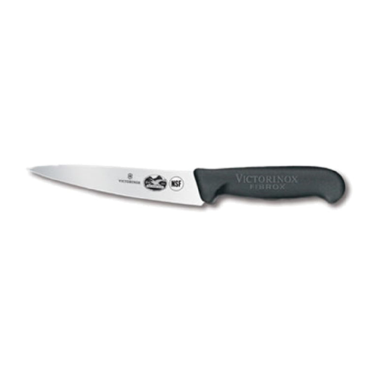 This chef's knife is designed for professional kitchens, providing a 5-inch blade optimized for intricate culinary tasks. The black fibrox handle enhances grip security, while the stamped construction ensures long-lasting edge retention. Its NSF-listed framework facilitates sanitation and compliance in foodservice setups. The knife supports efficient workflow integration, particularly in prep stations and butchering applications, with precise and durable craftsmanship tailored for moderate-volume processing. The handle width at 1-1/4 inches ensures ergonomic handling for extended cutting sessions.