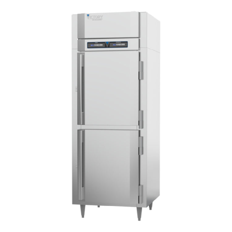 Victory HRS-1D-S1-EW-HD-HC stands out among commercial dual temp cabinets with its advanced V-Core™ technology, robust stainless steel construction, and ease of service access through its top-mounted compressor. Its environmental refrigerant and dual zone design improve efficiency and operational reliability, supporting diverse food storage needs. The wide hinged doors and interior shelving maximize workflow, while compliance with sanitation standards ensures safe food handling. It is tailored for medium-volume food operations demanding durability and precise temperature control, making it a dependable choice for professional kitchens and hospitality settings.