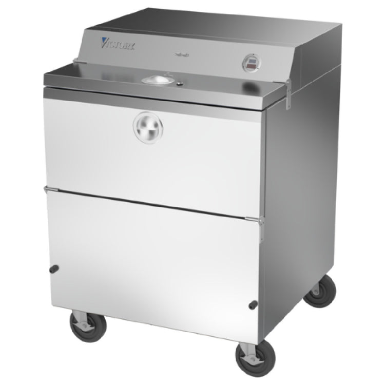 This commercial milk cooler from Victory Refrigeration is a self-contained, air-cooled unit powered by a 1/3 HP compressor, operating within a 36°F to 40°F temperature range. Its dimensions measure 34 inches in width, 34.5 inches in depth, and 47.87 inches in height, with a total weight of 335 lbs. The unit features a stainless steel construction on both interior and exterior surfaces for longevity and ease of cleaning, adhering to high food safety standards. Its refrigeration system uses environmentally friendly R290 hydrocarbon refrigerant, with cooling achieved through forced air circulation that ensures consistent temperature performance. Certified for cULus, UL EPH, and UL-Sanitation standards, it provides dependable operation suitable for high-demand foodservice environments. Designed with 14.72 cubic feet of storage capacity, this model supports efficient throughput in school and institutional settings.