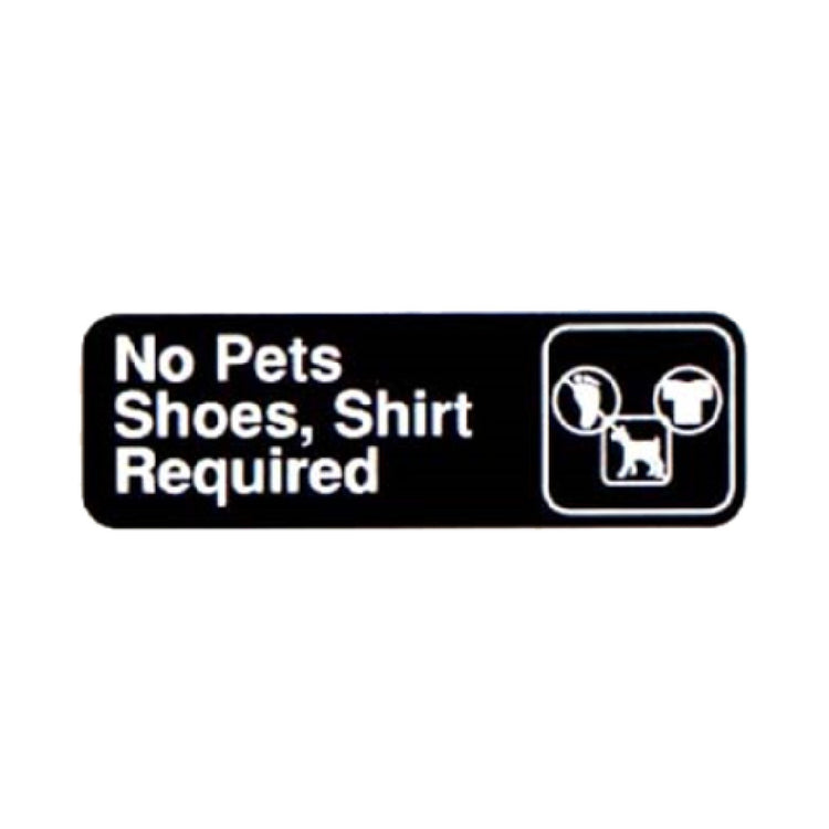 Vollrath 4523 9 Inch No Pets/Shoes Shirt Required Sign White on Black