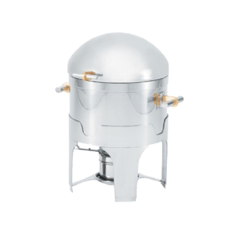 The Vollrath 46104 inset pan features a robust stainless steel construction with dimensions optimized for standardized chafing frames. Weighing 1.59 lbs, it is lightweight for manual handling yet built to withstand frequent commercial use. The round shape ensures compatibility with existing chafer accessories, while the retractable handles facilitate quick insertion and removal. This model adheres to safety and maintenance parameters standard for high-volume foodservice, supporting efficient cleaning routines and consistent performance during service hours. It does not include electrical components or cooling features. Dimensions and materials are designed for durability and ease of use, making it an ideal choice for professional catering, buffet lines, and hotel foodservice operations.