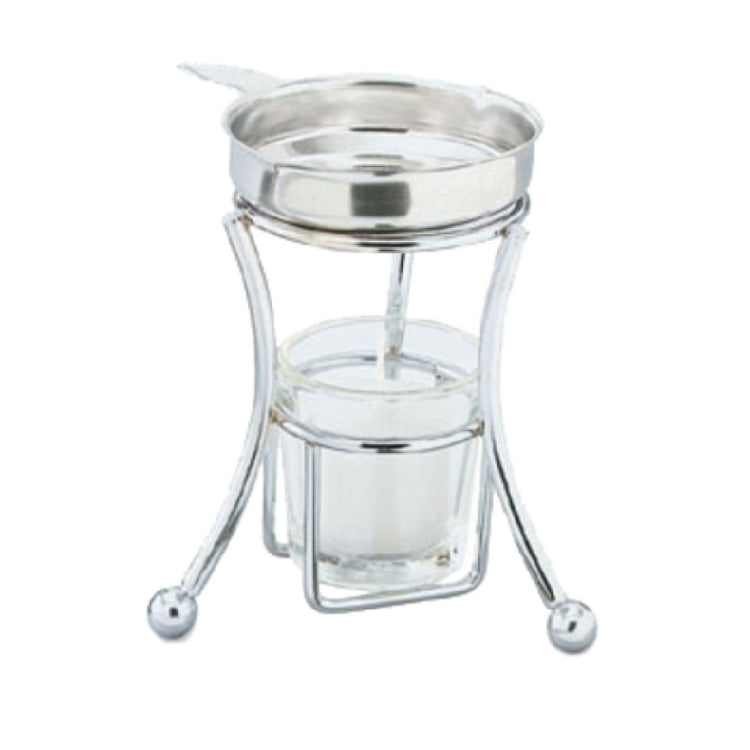 The Vollrath 46776 Butter Melter is a professional-grade stainless steel utensil designed for precise and efficient melting of butter in commercial foodservice environments. With a height of 5 inches and a capacity of 3.25 ounces, this butter pan offers durability and ease of handling for high-volume operations. Its integrated handle and pour spout facilitate controlled transfer of melted butter, making it suitable for use directly at serving stations, buffet lines, or prep areas. Crafted from high-quality stainless steel, the unit ensures longevity, corrosion resistance, and consistent performance during daily use. This product is ideal for restaurants, catering services, and institutional kitchens requiring consistent butter presentation and easy cleanup in a compact form factor.
