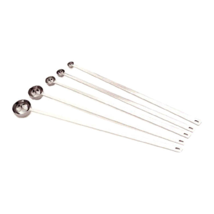 The Vollrath 47028 measuring spoon is engineered with a focus on durability and functional precision, constructed entirely from stainless steel with a 14-inch handle length. It weighs approximately 0.24 lbs, ensuring sturdy handling without excessive bulk. The utensil's design integrates stamped capacity markings for quick reference and disassembly for straightforward cleaning. Suitable for both dry and liquid ingredient application, its material and finish support routine sanitation and resistance to corrosion. Dimensions, weight, and construction details together make it appropriate for high-use environments such as bakery stations, culinary preparation lines, and large-scale food production. Its reliability and size optimize performance in fast-paced commercial settings, aiding ingredient accuracy and workflow efficiency.