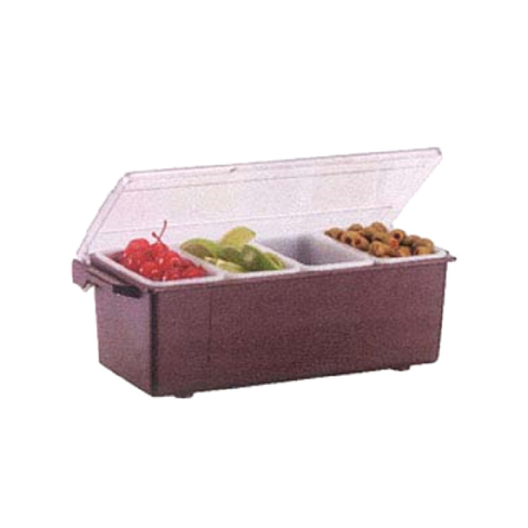 This condiment dispenser supports efficient workflow in commercial kitchens by enabling quick, accurate dispensing of condiments. Crafted with high-quality plastic, it withstands daily use in busy service areas. The integrated clips allow for self-closing, enhancing sanitation and minimizing product waste. Its 4-pint capacity suits moderate throughput environments, while the extra-deep cabinet improves storage management. The design is tailored for seamless integration into bar and buffet setups, promoting streamlined condiment access and consistent presentation.