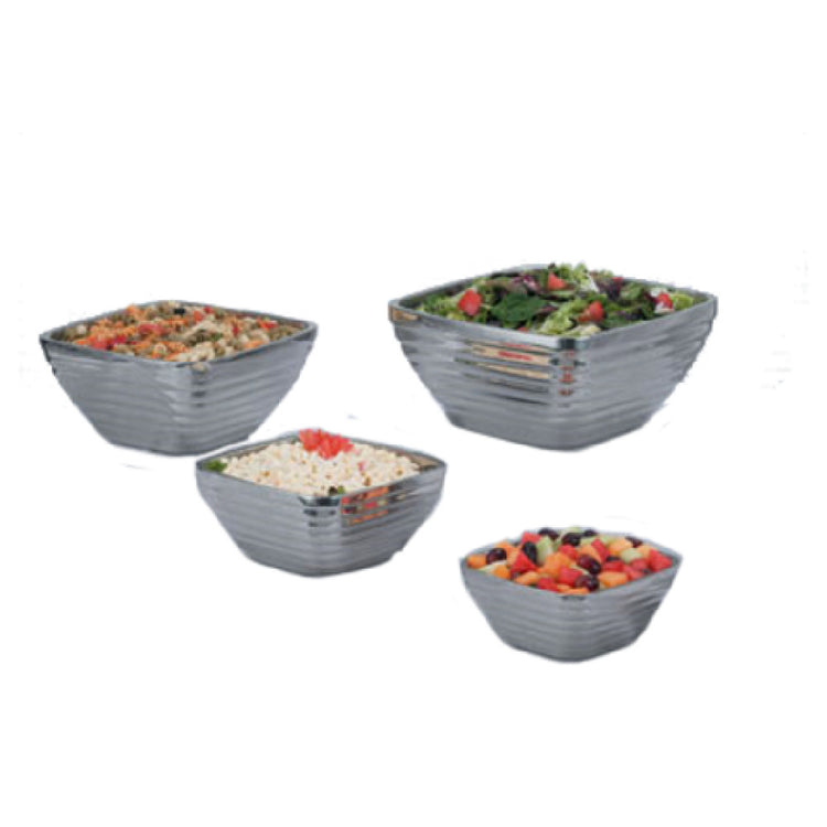 A commercial serving bowl is a durable, food-grade vessel designed for transporting and presenting foods in high-volume settings such as cafes, catering, or banquet halls. These bowls are often constructed from robust materials like stainless steel, tailored to withstand frequent cleaning and handling. The Vollrath 47619 serving bowl is specifically engineered with double-wall insulation, maintaining optimal serving temperatures without preconditioning. Its square beehive design enhances presentation appeal and portion control, making it well-suited for professional foodservice environments that require efficient, reliable, and attractive serving solutions.