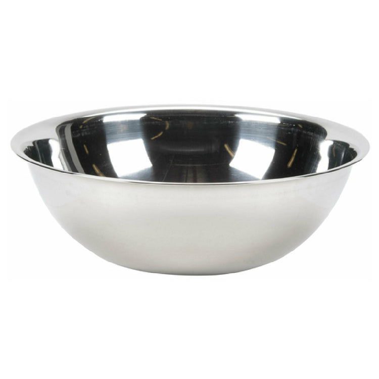 This 13-quart stainless steel mixing bowl is engineered for foodservice environments requiring high durability and ease of handling. Its substantial capacity accommodates multiple ingredients or bulk preparation, while the stainless steel construction ensures long-term resistance to dents and corrosion. The bowl's smooth surface facilitates quick cleaning, and its size and weight support stable placement on a countertop or mixing station. Suitable for large-volume mixing, it integrates seamlessly into commercial kitchen workflows, enhancing operational throughput and sanitation standards.
