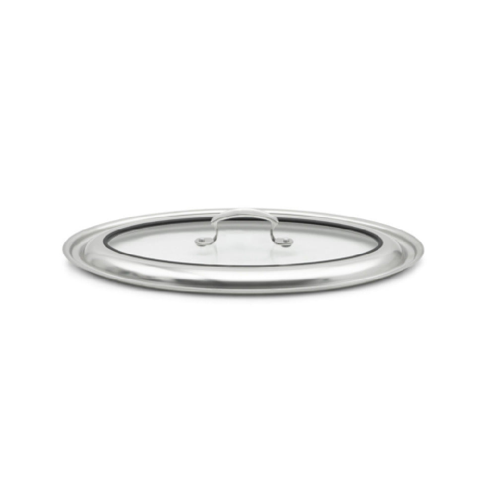 The Vollrath 49442C Miramar® Lid is engineered for commercial foodservice environments, offering a secure fit for 16" oval au gratin pans with riveted handles for durability. Made from stainless steel and glass, it combines heat retention with easy cleaning, ideal for buffet lines and catered events. Its precise dimensions facilitate seamless integration into food holding stations, reducing heat loss and simplifying maintenance routines.