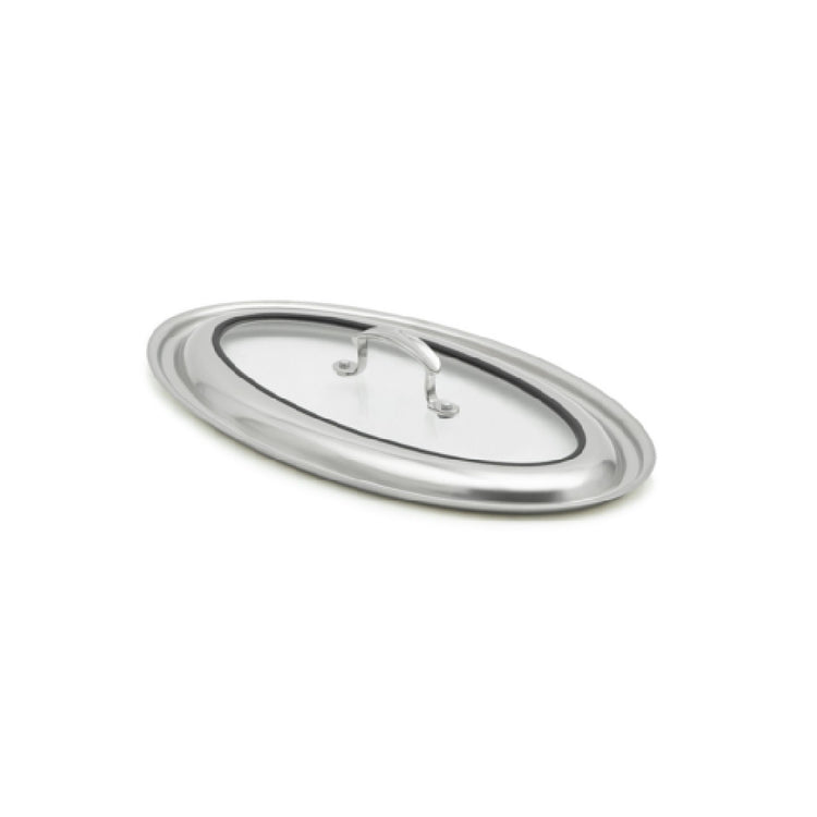 The Vollrath 49442C Miramar® Lid is a commercial-grade chafing dish cover designed for precise fitting on 16-inch oval au gratin pans. Crafted from durable stainless steel with glass components, this oval lid measures 16" x 9" x 2-1/2" and features riveted handles for secure handling. As a key item within Vollrath's professional cookware accessories range, it enhances heat retention and presentation for gastronorm, catering, and buffet applications, providing a reliable solution for maintaining food quality during holding and service. Its technical specifications emphasize durability and functionality in high-demand settings.