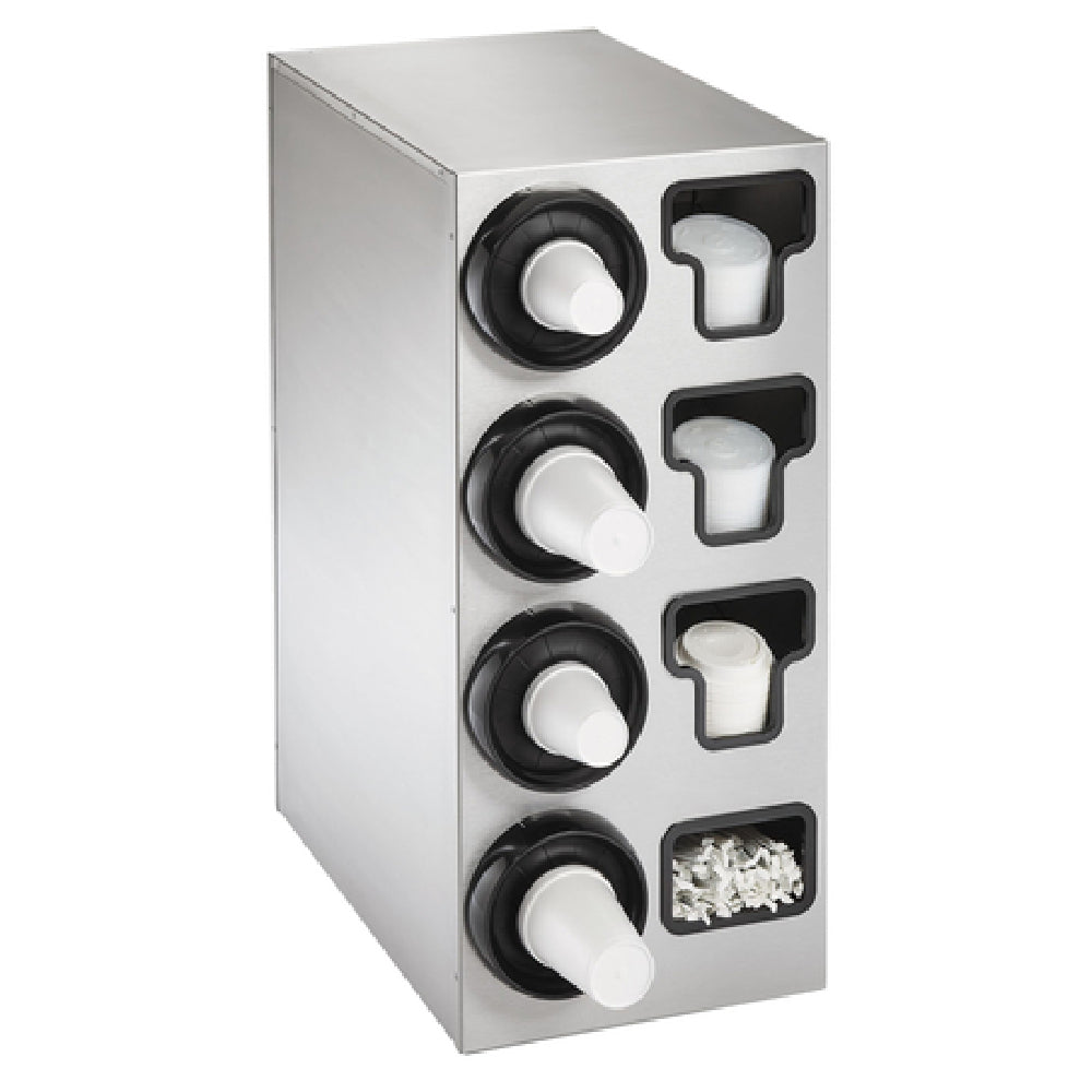 Constructed by Vollrath, the Vollrath 58834 cup dispenser is a reliable, commercial-grade countertop system designed for moderate throughput environments like cafes and catering. Its stainless steel build ensures long-term durability, while the vertical design maximizes space efficiency. Ideal for medium-volume service, it features integrated lid and straw storage, supporting efficient workflow and sanitation standards.