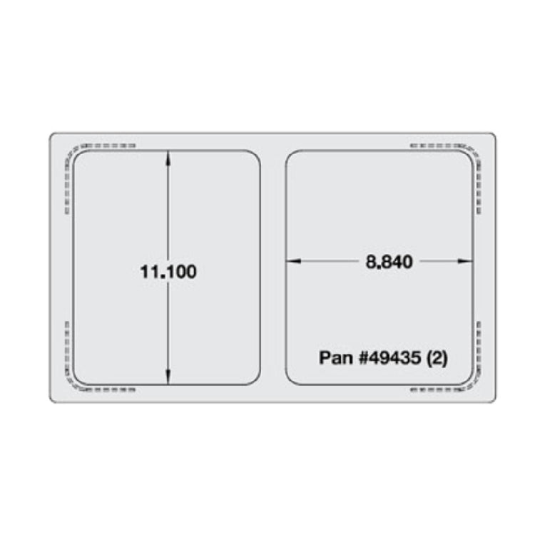 The Vollrath 8243014 Miramar™ Single Size Template for Miramar™ Cookware is a commercially engineered stainless steel accessory designed specifically for precision placement of small food pans within Miramar™ cookware systems. This adapter plate features two small food pan cutouts, each accommodating 49435 Miramar™ small food pans with handles, and measures 21-1/8 inches by 12-3/4 inches for seamless integration into professional cooking setups. Constructed from durable stainless steel, it offers corrosion resistance and longevity suitable for high-demand foodservice environments. This template facilitates standardized pan positioning, optimizing workflow efficiency in commercial kitchens, buffets, and catering operations that utilize Miramar™ cookware. Its robust design supports streamlined food presentation and efficient material handling for medium-volume food production lines.