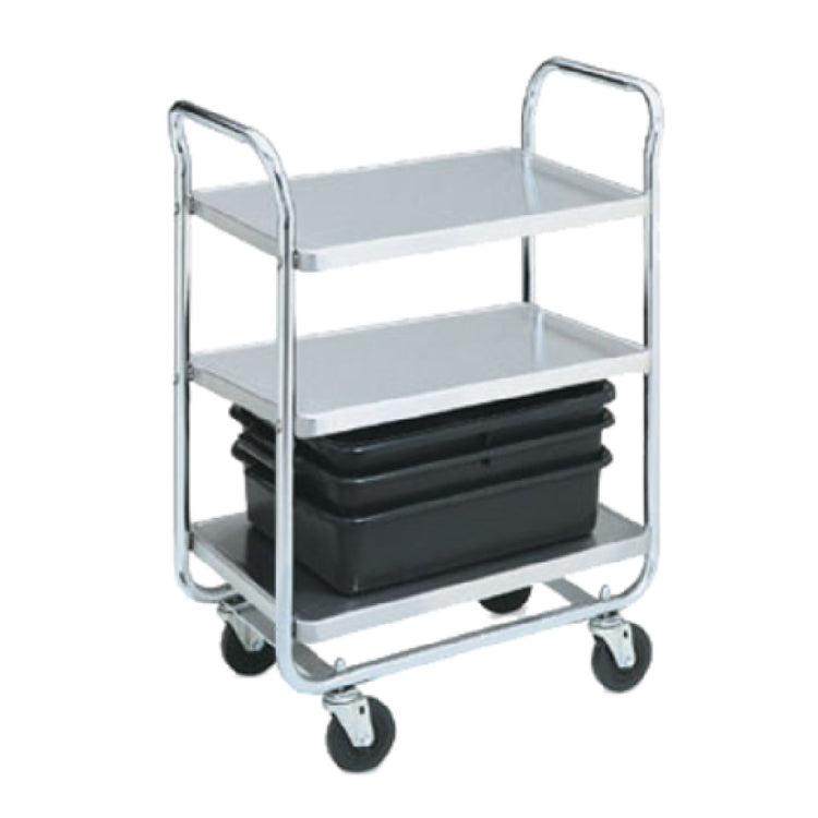Vollrath, 97166, Utility Carts, 400 lb, cap., extra heavy duty Chrome plated tubular steel with (3) one-piece stainless steel die drawn 24" x 16" shelves, 28"L x 16"W x 36"H, 4" casters, Made in USA