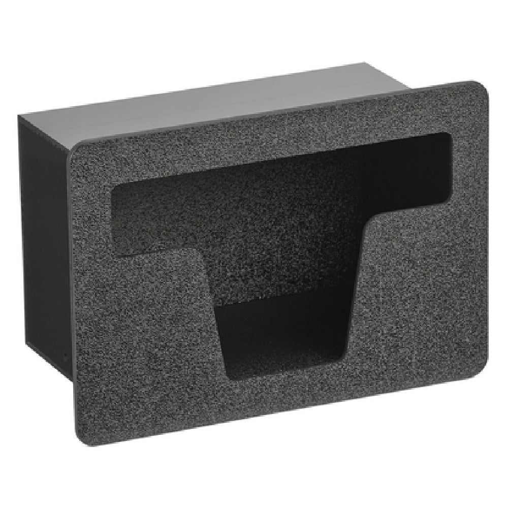 The Vollrath FMS-6 Straw Holder Flush Mount is a commercial-grade in-counter accessory designed for efficient storage and easy access to wrapped straws in foodservice environments. Constructed from durable black ABS plastic, this model measures 10-9/16 inches in width, 4-13/16 inches in depth, and 7-5/16 inches in height, with a cutout requirement of 9-1/8 inches by 5-3/4 inches. It accommodates 8-inch wrapped straws, making it suitable for high-traffic beverage stations, cafes, and quick-service restaurants. Thanks to its "T" shaped design, it offers a streamlined, flush-mounted integration into countertops, ensuring seamless workflow and sanitation while maintaining countertop efficiency.