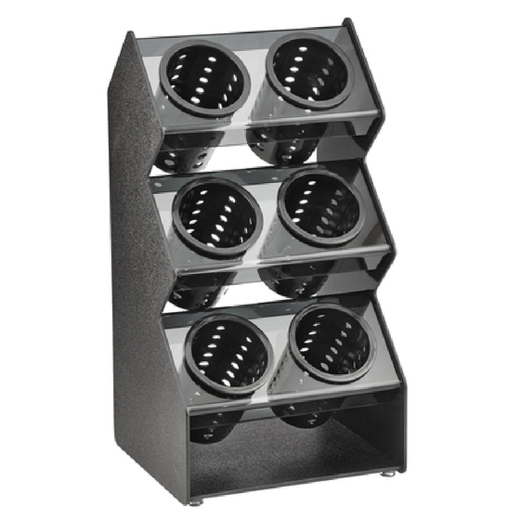 Vollrath FWVH-3X2B 11 Inch Vertical Flatware Holder Countertop Black ABS and Smoked Acrylic 6 Compartment with Cylinders