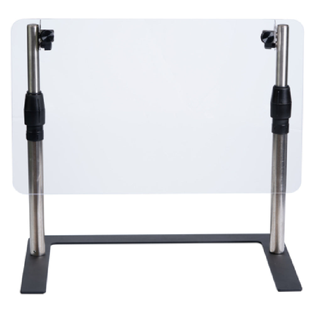 The Vollrath MB24FLAT 24" Mobile Countertop Breathguard is a versatile protective screening solution designed for foodservice environments that require hygienic separation. This portable sneeze guard features a 24-inch wide, single-sided acrylic panel with an adjustable flat surface, supported by stainless steel poles with molded height adjustment knobs from 14-1/4" to 25-1/4". Crafted with a durable stainless steel and steel frame, this unit is optimized for self-service applications such as buffet lines, catering stations, and countertop displays. Its design allows compatibility with most warmers, chafers, and buffet service pieces, facilitating seamless integration into various food presentation setups. Made in the USA, it provides a reliable, easy-to-assemble barrier solution with replacement parts readily available, ensuring long-term operational efficiency.