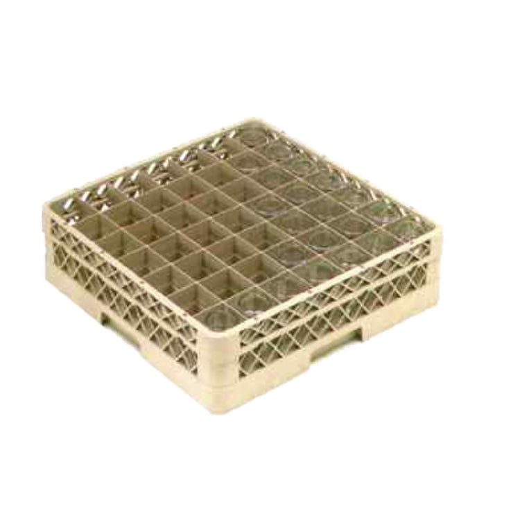 The Vollrath TR9E-44 Traex® Full Size Glass/Stemware Rack is a commercial-grade storage solution designed for efficient organization of glassware and stemware in busy foodservice environments. This NSF-listed rack features 49 precisely measured 2-7/16" square compartments, accommodating glasses with diameters up to 4" and heights ranging from 2" to 4". Constructed from durable co-polymer plastic, it offers corrosion resistance and long-lasting resilience suitable for high-volume use. The full-size (19-3/4" x 19-3/4") double-walled design includes an open bottom and sidewall, facilitating airflow, rapid drying, and easy cleaning. Its ergonomic handles on all four sides support smooth handling and transport, making it ideal for commercial dishwashing lines, bar stations, or glassware storage in busy hospitality settings. This model includes a 49-compartment extender, enhancing capacity and workflow flexibility, with a maximum inside height of 4-13/16".