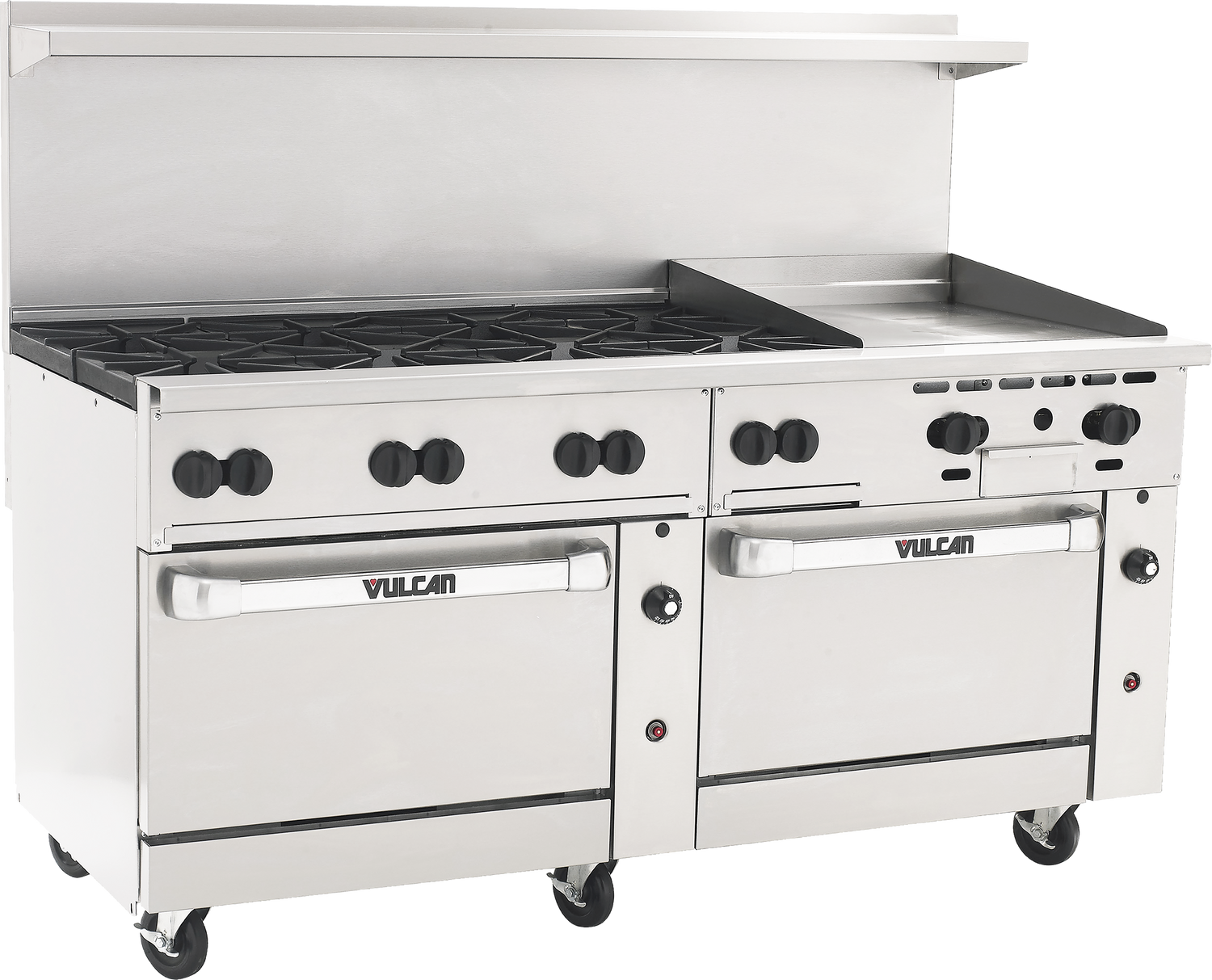 The Vulcan 72SS-8B24GN Endurance™ restaurant range offers robust build quality, precise performance, and high adaptability for medium-volume foodservice operations. Built for reliable operation, it supports diverse cooking applications with multiple burners and a manual griddle, making it ideal for busy commercial kitchens seeking durable, scalable equipment tailored for efficient, consistent output.