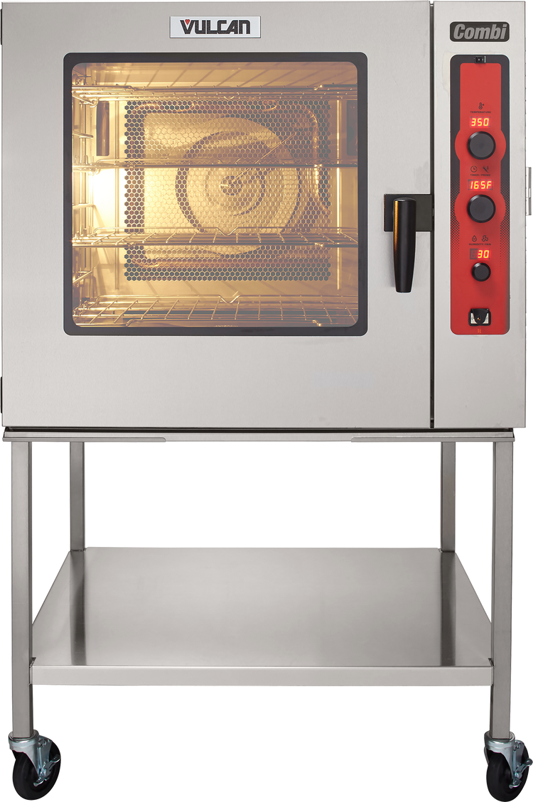 Vulcan, ABC7G-NATP, Combi Oven/Steamer, natural gas, boilerless, (7) 18" x 26" full size sheet or (14) 12" x 20" full size hotel pan capacity, (3) knobs with LED displays for temperature, timer & humidity, auto-adjustment of humidity with temperature selection, food probe, auto-reversing fan with speed control & electronic braking system, cool to touch glass door, flashing door light & audible alert, (4) Grab n Go wire racks, stainless steel interior & exterior, 80,000 BTU, 120v/60/1-ph, engineered & assembled in USA, UL EPH Classified, cULus