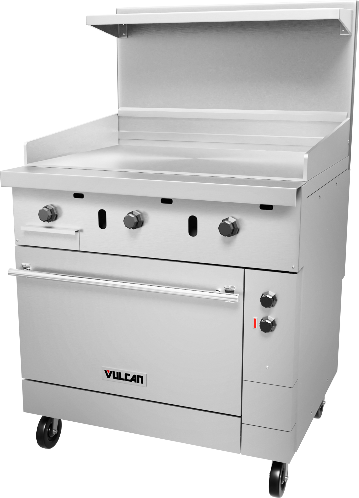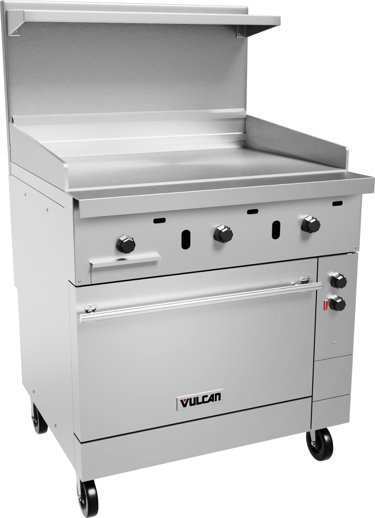 A commercial range is a heavy-duty cooking appliance designed for high-volume food preparation in professional kitchens. The Vulcan EV36S-36G480 combines a durable stainless steel build with precise temperature controls and versatile cooking surfaces, making it suitable for restaurant and institutional use. Installed in standard kitchen setups, it supports a variety of cooking processes including baking, roasting, and grilling—ideal for mid-volume restaurant operations and catering facilities seeking reliable, restaurant-grade equipment.
