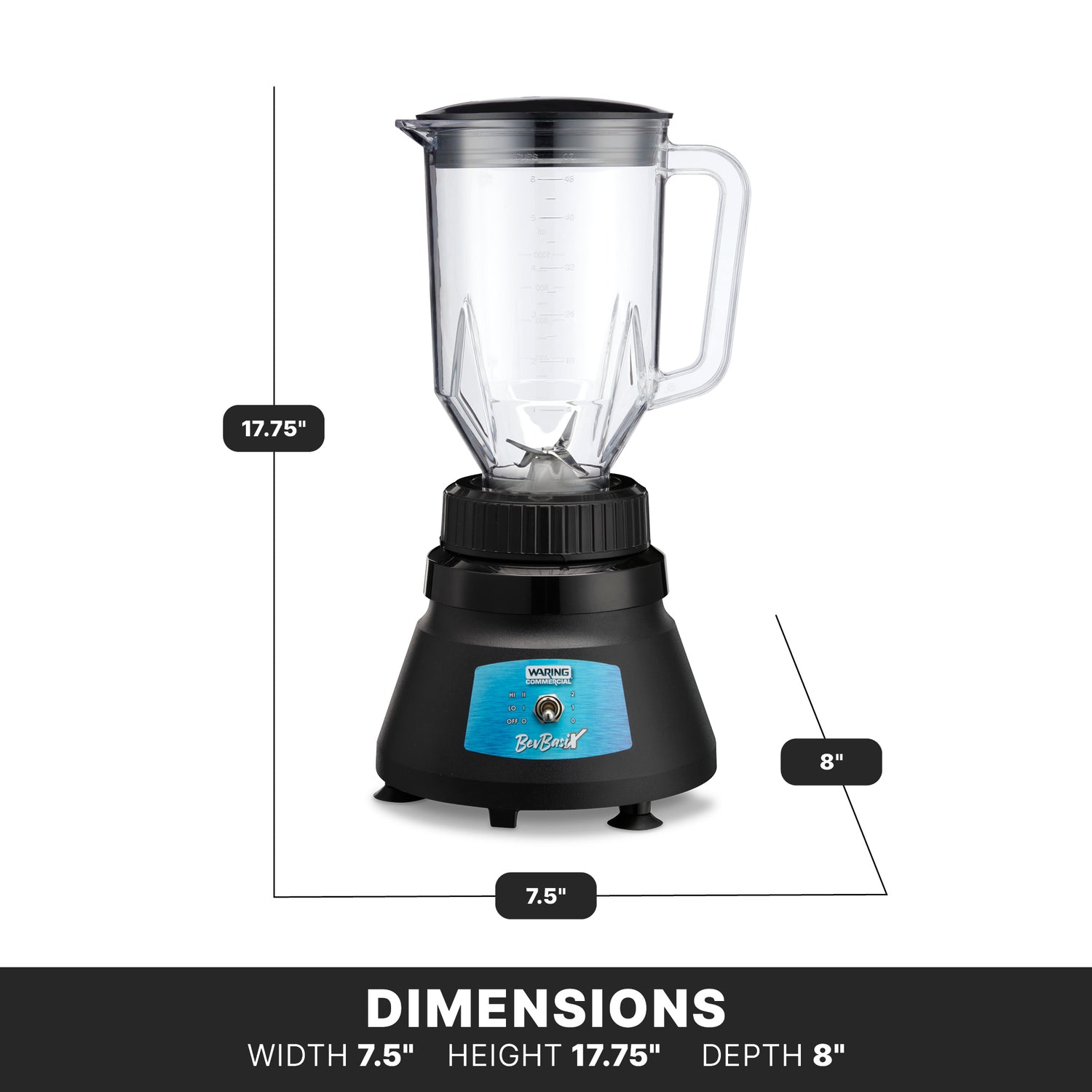 The Waring BB145 BevBasix Bar Blender is a commercial-grade blending appliance designed for efficient beverage preparation in foodservice establishments. Featuring a 48 oz. copolyester container and a heavy-duty stainless steel blade, this bar blender is engineered for durability and consistent performance. Powered by a reliable 1/2 HP, 2-speed motor operating at 120V/60Hz and 360 watts, it supports high-volume cocktail and smoothie blending tasks with ease. Constructed in the USA, it ensures quality, sanitation, and longevity, making it suitable for busy bars, cafes, and catering environments seeking dependable equipment to streamline drink preparation.