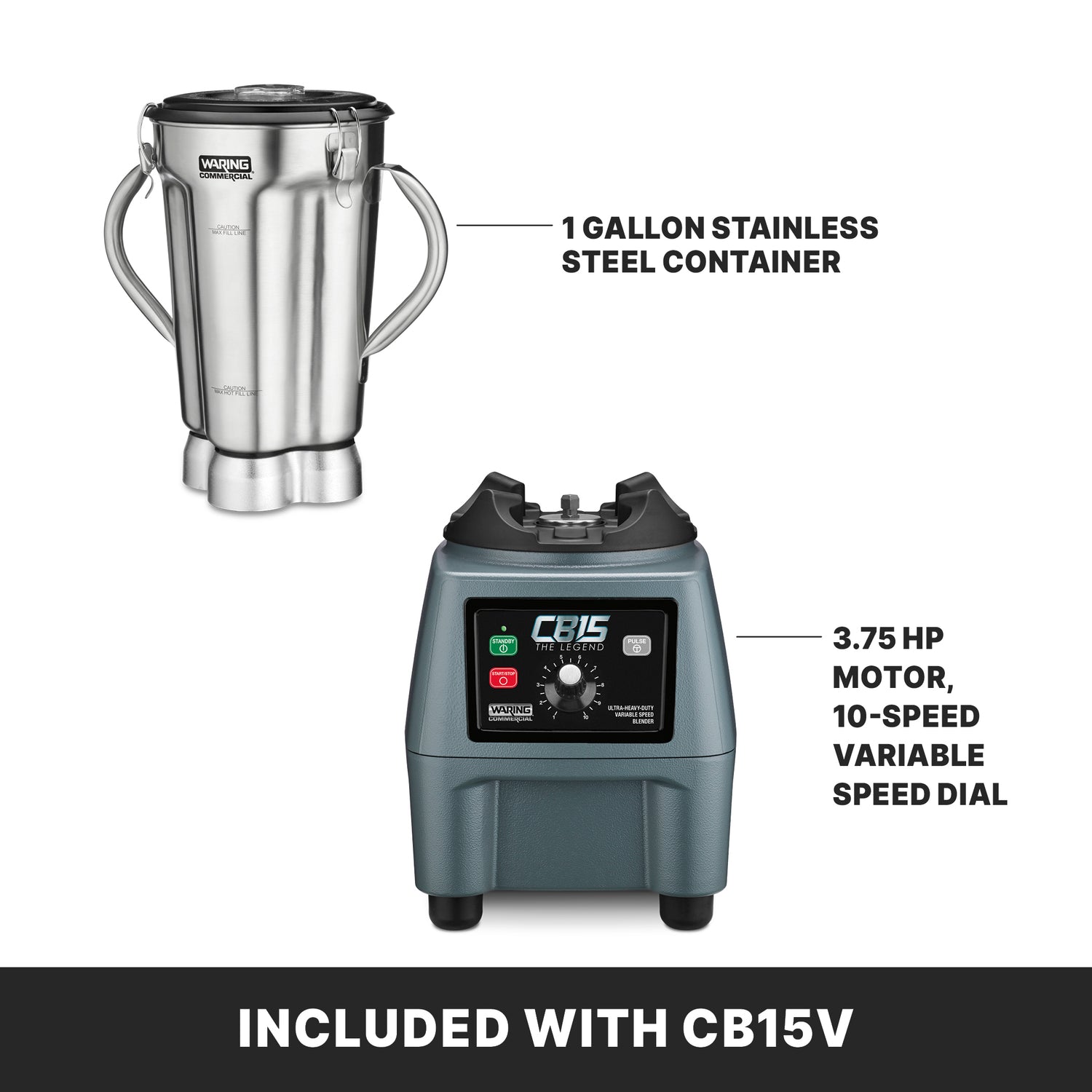 Waring CB15V The Legend One-Gallon Food Blender with Variable-Speed and Stainless Steel Container