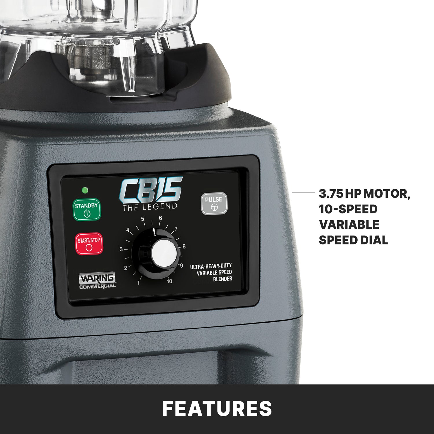 Waring CB15VP stands out among commercial blenders with its high-capacity Tritan® container, robust stainless steel components, and variable speed control, optimizing performance and longevity. Its durable die-cast housing ensures dependable operation in high-demand environments, and the impact-resistant container simplifies cleaning and maintenance. Designed to improve operational efficiency, it offers powerful blending capabilities aligned with busy foodservice workflows.