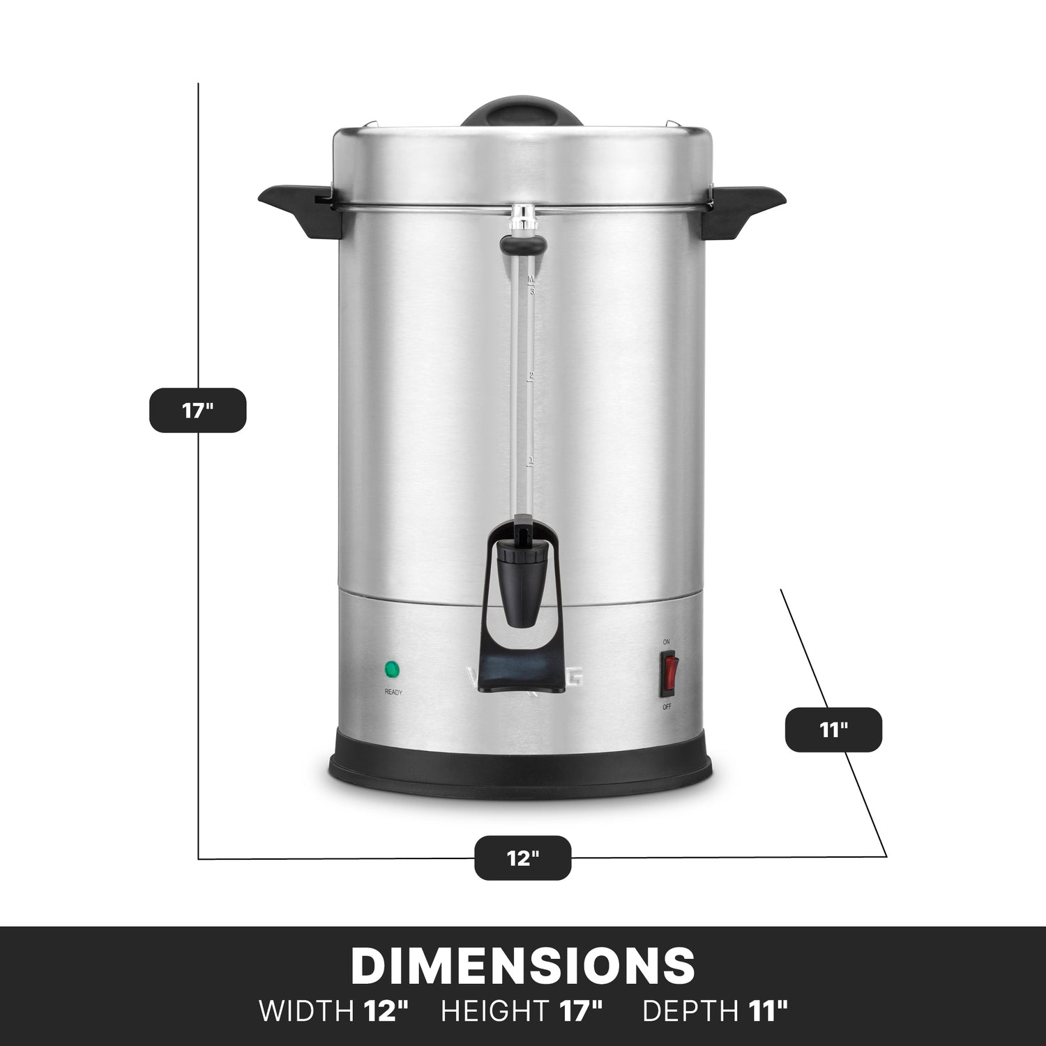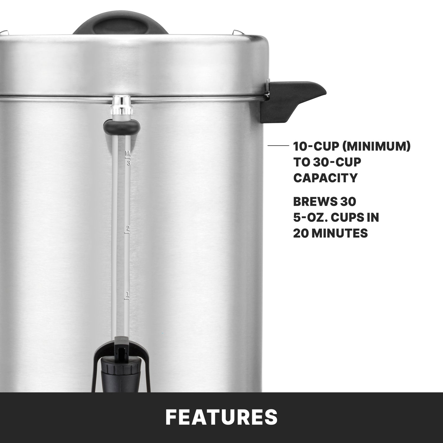 The Waring WCU30 Coffee Maker / Brewer Urn is a commercial-grade beverage equipment solution designed for high-volume catering, hospitality, and foodservice operations. It features a 30 (5 oz.) cup capacity and Dual heater system to ensure continuous brewing and hot beverage maintenance. Constructed from durable stainless steel housing, this unit incorporates boil dry protection and a brew level sightglass for precise operation, making it suitable for institutional settings seeking reliable and efficient coffee dispensing at 120 volts with a power output of 1440 watts.