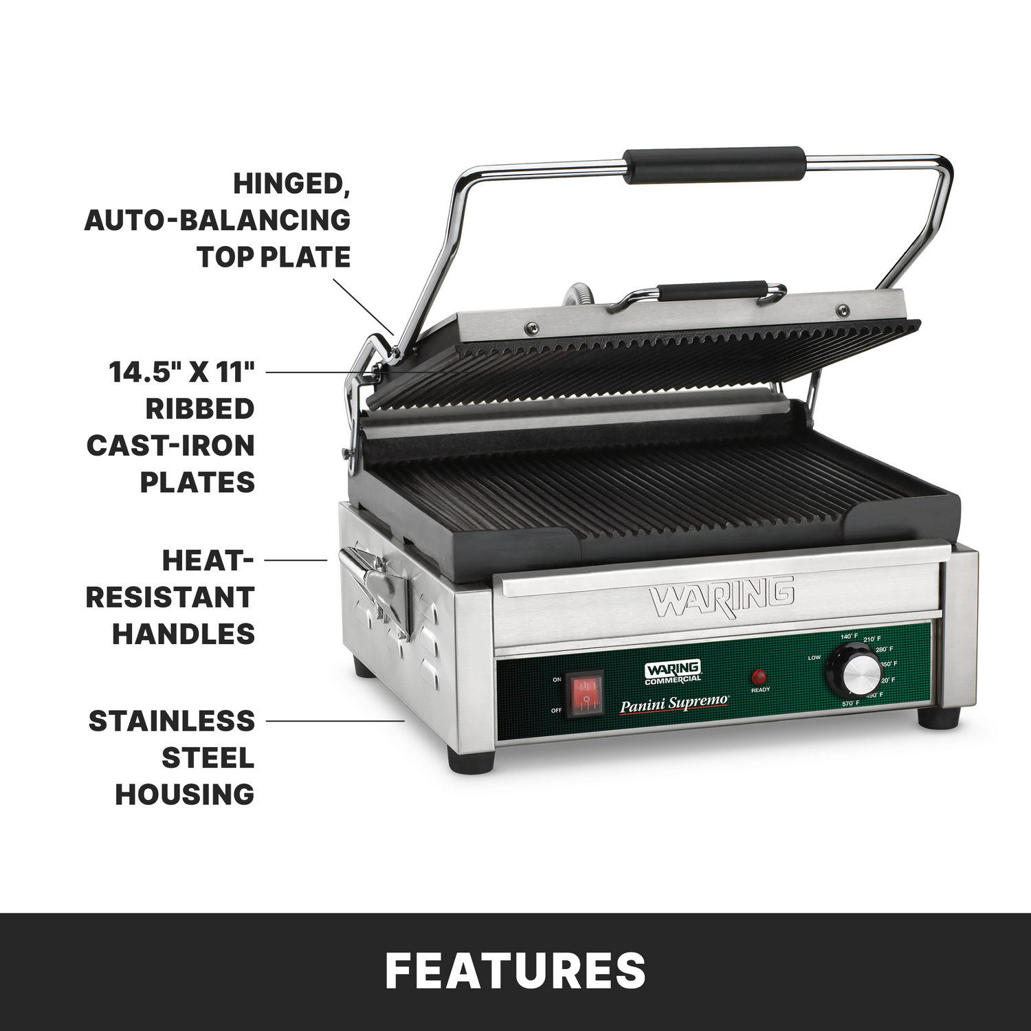 Waring WPG250 Ribbed Panini Grill, 14.5 in. x 11 in.