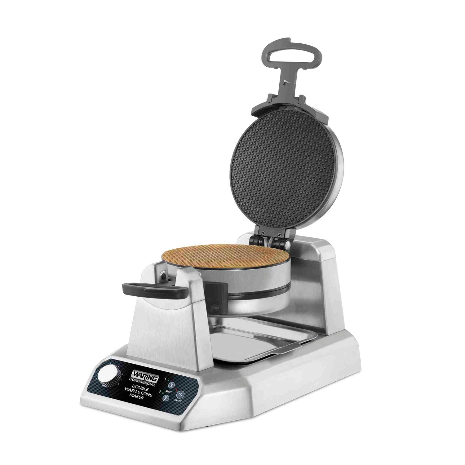 The Waring WWCM200 waffle cone maker combines robust construction with technical precision essential for commercial bakeries. Its double unit design allows simultaneous production, reducing downtime during peak hours. Equipped with non-stick plates for effortless cleaning and a rolling/forming tool, it streamlines cone shaping processes. Designed for consistent output, the unit supports efficient high-volume cone production in ice cream shops or event catering. Integrated features include an audible beep signal to alert operators upon completion, optimizing workflow without constant supervision.