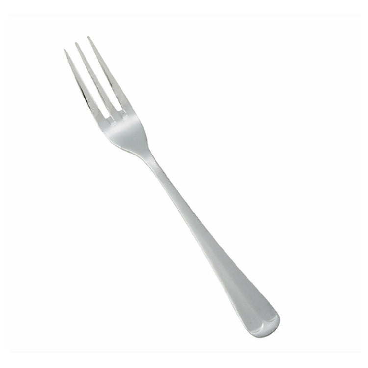 The Winco 0015-06 salad fork is a commercial flatware item crafted from high-quality 18/0 stainless steel, meeting industry standards for durability and ease of maintenance. It measures 6-3/4 inches in length with a weight of 0.71 lbs per piece, suitable for high-volume settings such as cafeterias and buffet lines. Its satin finish provides scratch resistance, while the robust construction ensures longevity against frequent dishwashing cycles. The flatware is non-certified but conforms to general safety and cleanliness standards for food contact. The design is compatible with standard dishwashing equipment and incorporates a simple, ergonomic handle for efficient use in busy environments.