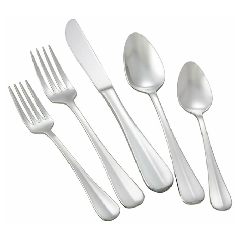 The Winco 0034-08 dinner knife offers a resilient, mirror-polished surface for easy cleaning and stain resistance, optimized for fast-paced foodservice workflows. Its extra heavy weight design enhances durability under rigorous handling, while the 9-inch length ensures ergonomic comfort during extended use. Built from high-quality 18/8 stainless steel, it maintains structural integrity in commercial dishwashing processes. The knife's balanced weight distribution facilitates precise cutting motions, suitable for bulk serving and consistent presentation in busy dining establishments.