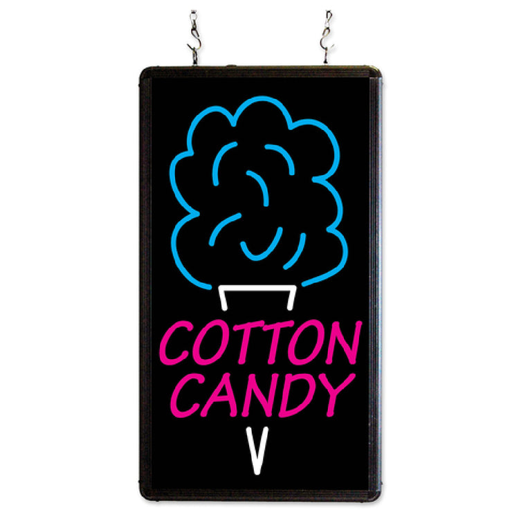 A commercial LED merchandising sign is a digitally lit display designed for high visibility in retail and foodservice settings. These signs use energy-efficient LEDs to highlight branding or products, often mounted above counters, kiosks, or shelving. The Winco 92005 Benchmark Ultra-Bright Merchandising Sign "Cotton Candy" is an example, featuring an extruded aluminum frame, bright LED back lighting, and standardized power connections, making it ideal for dynamic advertising in mid-volume foodservice operations like concession stands, bakery counters, or snack zones, where clear, bright messaging enhances customer attraction and product presentation.