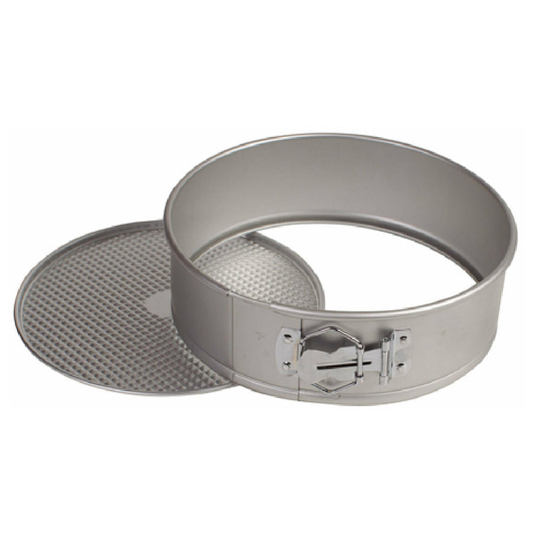A top-tier lightweight baking pan with a removable side wall designed for delicate baked goods and layered dishes. It includes a non-stick coating, heat resistance up to 450°F, and is preferred in bakery, pastry, and catering operations. The Winco AASP-093 springform pan is used for producing uniform desserts like cheesecakes or cold presentations requiring precise shaping, suitable for high-volume bakery and catering workflows, and installed in standard commercial ovens to optimize production efficiency.