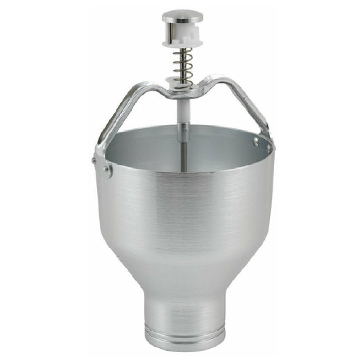 The Winco APCD-6 batter dispenser operates with a standard manual dispensing mechanism, featuring a robust 10-gauge aluminum body for industrial resistance to corrosion and daily wear. Its dimensions are 6-1/2 inches in width and depth, with a height of 12-4/5 inches, making it ideal for installation on countertop workspaces. The unit supports (8) portion settings, adjustable from 1/2 oz. to 8 oz., with a total weight of approximately X lbs. The non-electrical design ensures easy manual operation, requiring no electrical connections. Constructed entirely of food-safe aluminum, it withstands frequent cleaning and sanitization routines. The dispenser’s precise portion control and durable build support consistent batter dispensing, streamlining breakfast and bakery production. Its ergonomic design allows for easy refilling and cleaning, ensuring operational uptime during busy service hours.