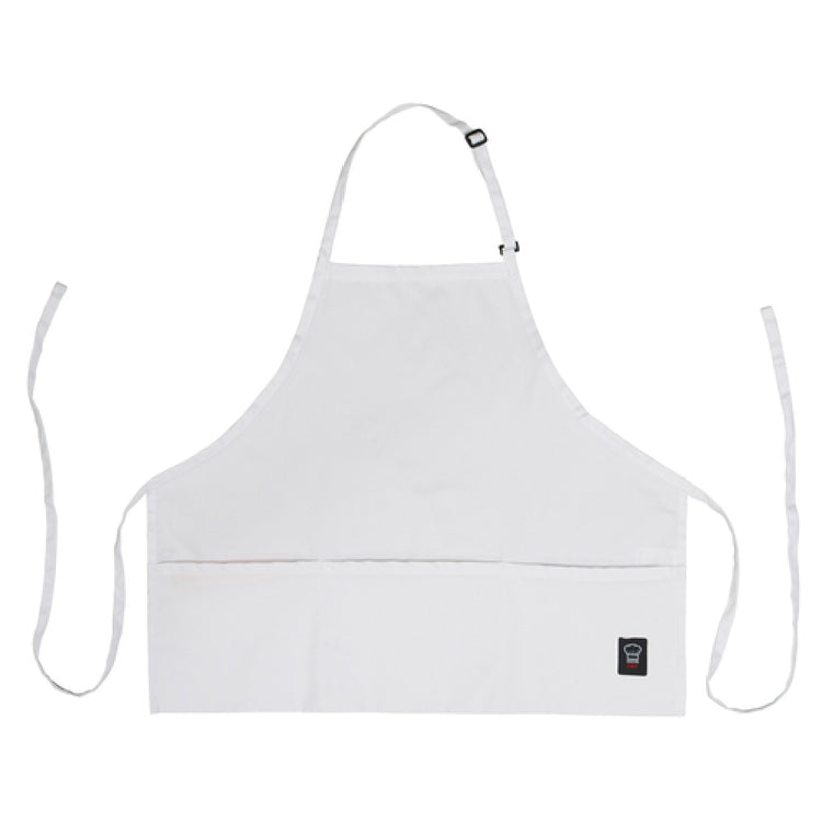 Winco, BA-2724W, Bib Apron, 24"L x 27-1/2"W, mid-length, with (3) pockets, adjustable neck strap, machine wash and dry, 65/35 poly-cotton blend, Signature Chef, white