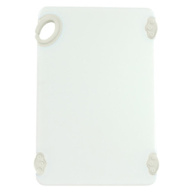 Winco CBN-1218WT 12 Inch Rectangular Cutting Board with Rubber Grip Hook White Co-polymer