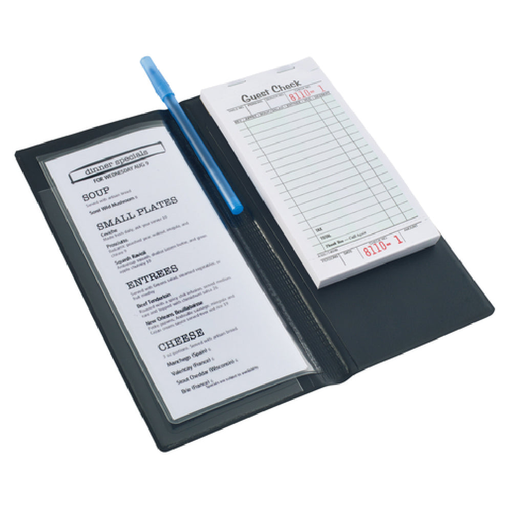 Winco CHK-3K 4.25 Inch Clear Sleeve Black Guest Check Holder with 3 Pockets