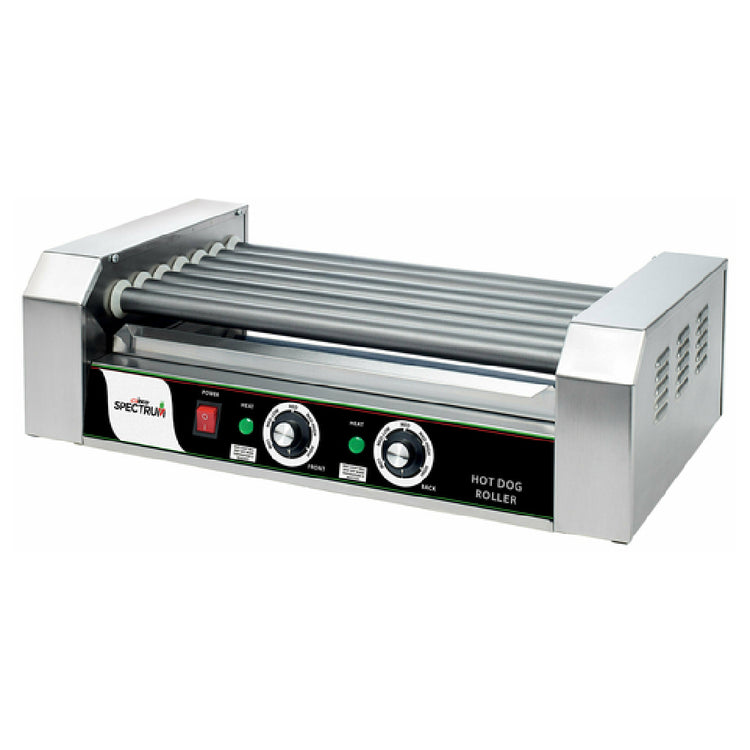 A commercial hot dog grill is a foodservice equipment designed for high-volume hot dog warming and cooking in professional settings. Built for durability, these units typically feature roller or flat-top surfaces with precise heat controls, supporting efficient operation in fast-paced environments like stadiums, concession stands, and quick-service restaurants. The Winco EHDG-7R Spectrum™ RollsRight™ Hot Dog Grill is a roller-type model with a capacity of 18 hot dogs, all stainless steel construction, and dual independent thermostats, making it suitable for medium-volume operations requiring consistent, high-quality warming performance.