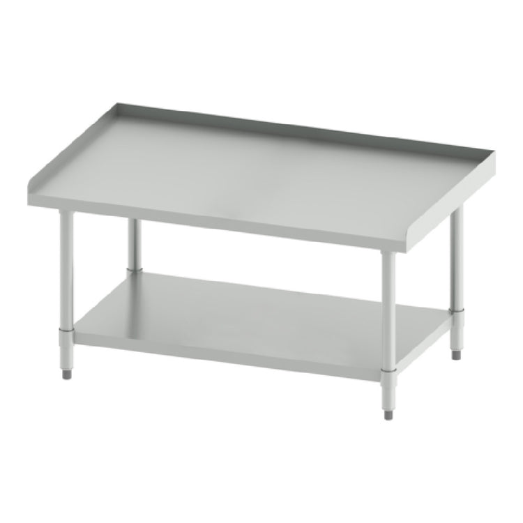 This equipment stand offers a commercial-grade stainless steel surface combined with galvanized undershelf and legs, providing reliable durability. Its solid construction supports heavy equipment and frequent cleaning, with easy maintenance access. Designed to fit seamlessly into busy foodservice workflows, it accommodates various appliances or prep stations, enhancing operational efficiency. The precise dimensions and NSF certification confirm its suitability for rugged kitchen environments requiring sanitary compliance.
