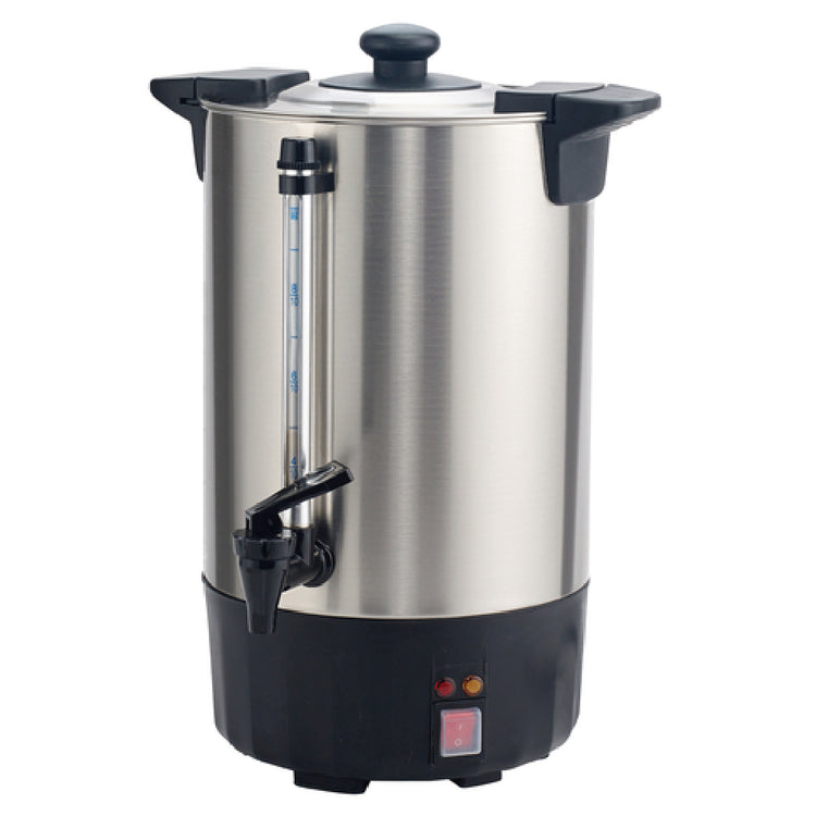 The Winco EWB-50A Commercial Water Boiler provides precise temperature control for continuous hot water production. Its stainless steel construction ensures durability in intensive use environments. The twist-locking lid and dripless faucet simplify operation and cleaning, while the cool touch handles enhance user safety. Designed for high-volume service, it integrates seamlessly into commercial kitchen workflows, supporting quick beverage preparation and tea service during peak hours.