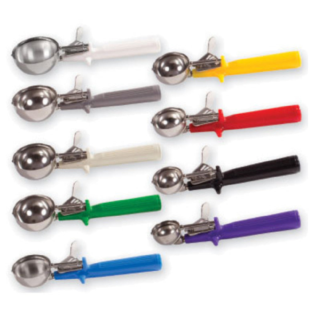 These high-quality dishers, including the Winco ICOP-30, are built for reliable, precise portioning in moderate-volume kitchens and institutional foodservice operations. Their durable construction and ergonomic design improve workflow, supporting steady throughput in busy food prep and serving environments without compromising sanitation or ease of maintenance.