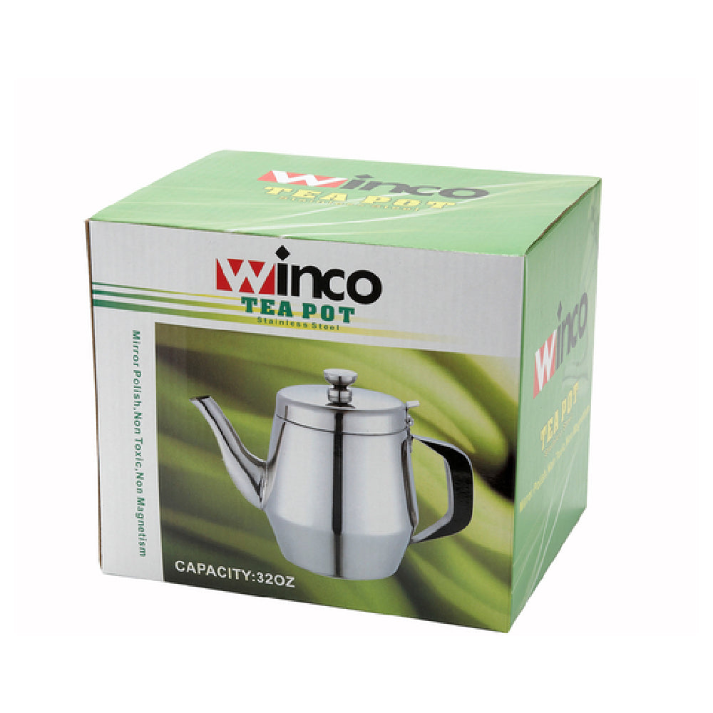 Winco JB2932 32 Oz Gooseneck Teapot Stainless Steel Hinged Top Handle