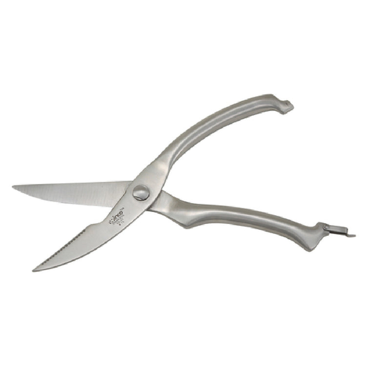 The Winco KS-03 Poultry Shears 10" Stainless Steel are precision-engineered cutting tools designed for professional foodservice applications. Crafted with durable stainless steel blades and features stainless steel handles, these poultry shears deliver high-performance cutting with corrosion resistance and ease of maintenance. Suitable for butchers, restaurant kitchens, and bulk food processing, they facilitate efficient poultry portioning and trimming. The 10-inch overall length provides optimal leverage and control, making these shears a reliable choice for heavy-duty kitchen tasks requiring precise cuts.