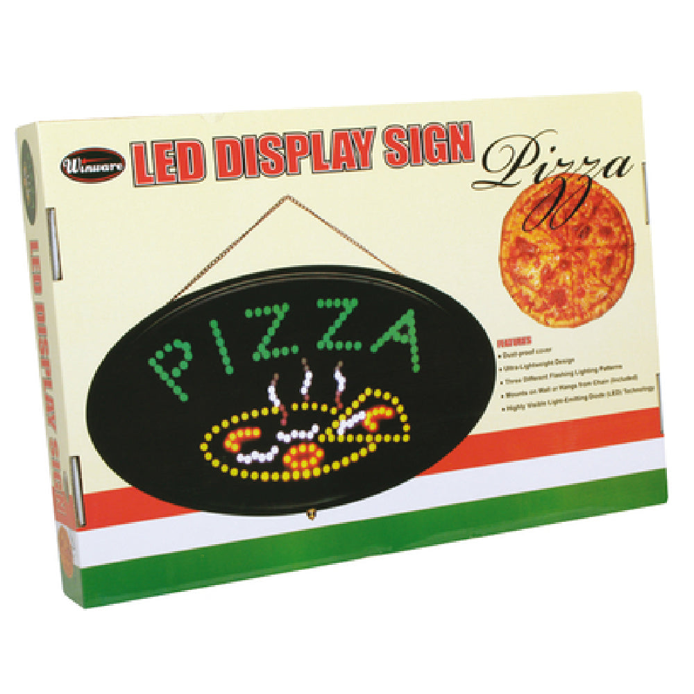 Winco, LED-11, LED Sign, 22-3/4"L x 14"W x 1-3/4"H, oval, "PIZZA", 3 flashing patterns, with dust proof cover & hanging chain, includes adapter with 118"L power cord, 120v/60/1-ph, UL